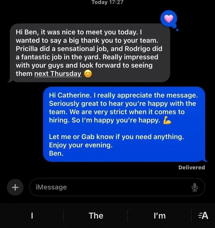 Catherine - D.V.A Veteran Client’s Wife - Landscaping and home cleaning services